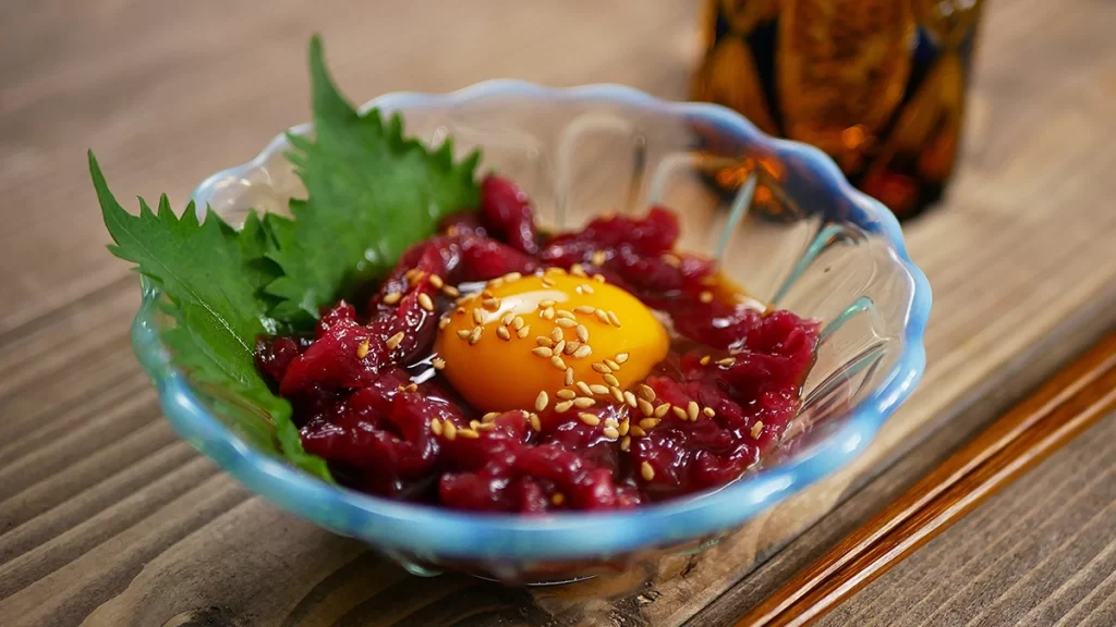 ユッケ風は調味が多くなりがちです。甘みやコクを盛るより、切り方をそろえて食感を残すほうが、皿が軽く終わります。卵黄を使う場合は、生の卵が気になる人がいる席では無理をしないのが良いでしょう。